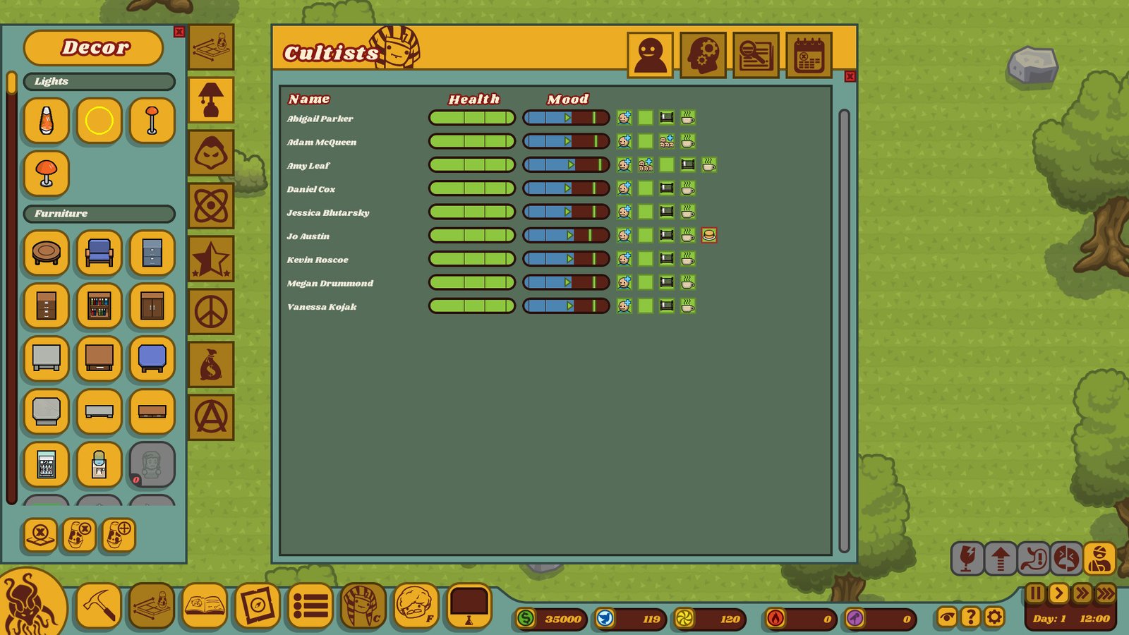 Invent a religion no one heard of and earn money! In Honey, I Joined a Cult you will learn the secrets of running a sect, managing the followers, and making sure no one ever doubts the meaning of this project!